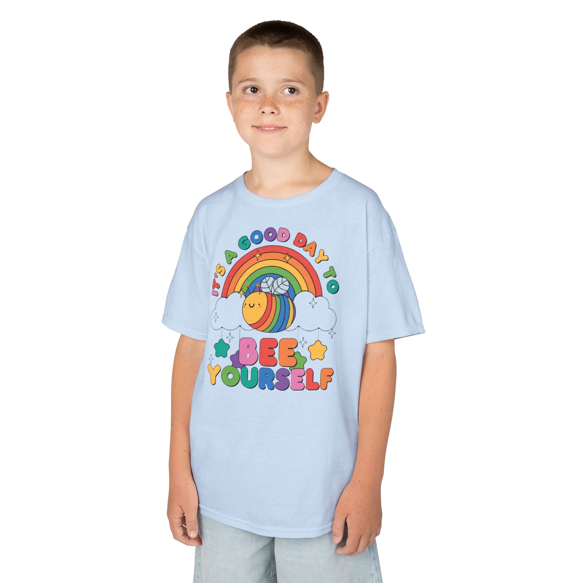 Introducing the perfect shirt for kids. This Kids Heavy Cotton™ Tee is designed not only for comfort but also to inspire creativity and positivity. Everyone should just Bee themselves and we loves this design.