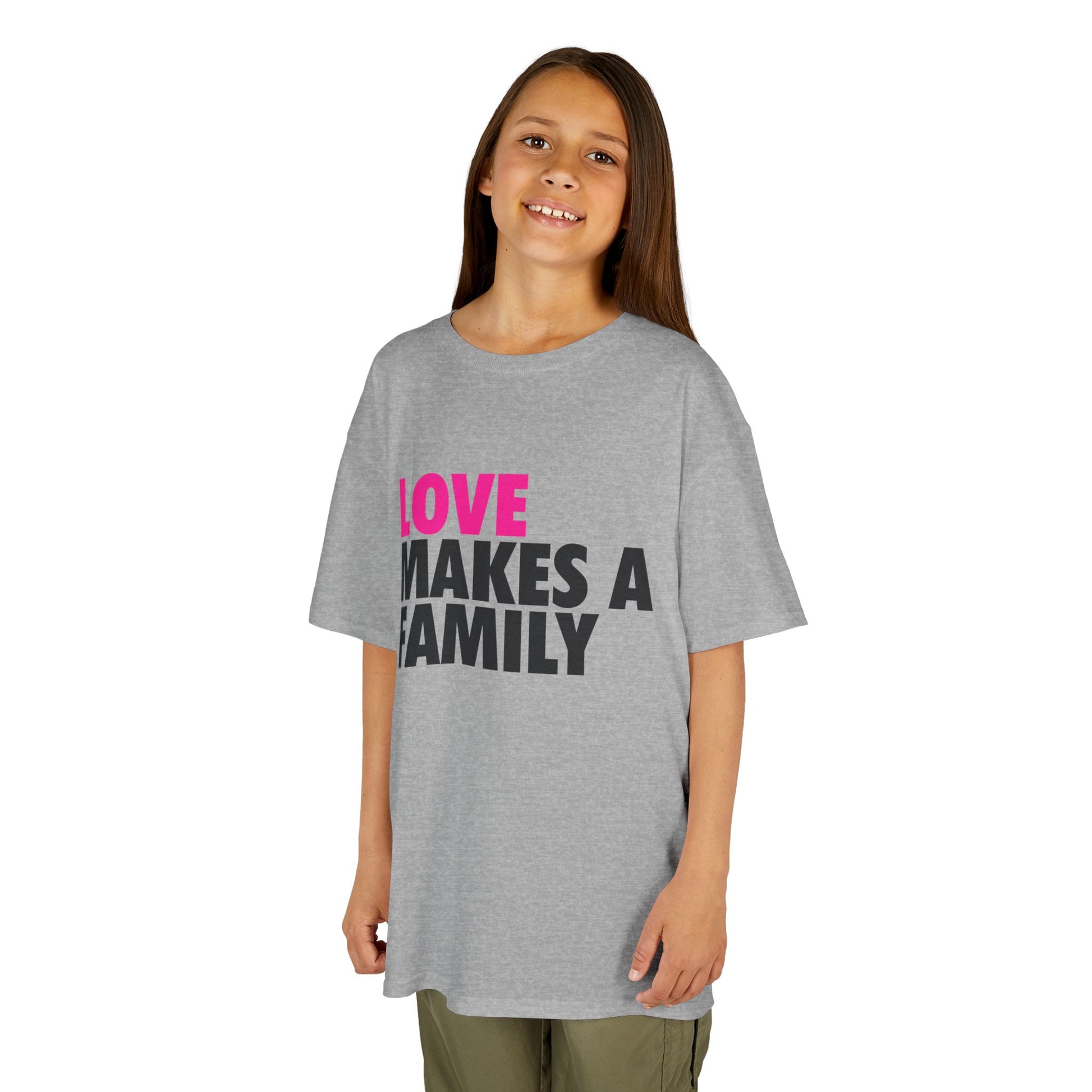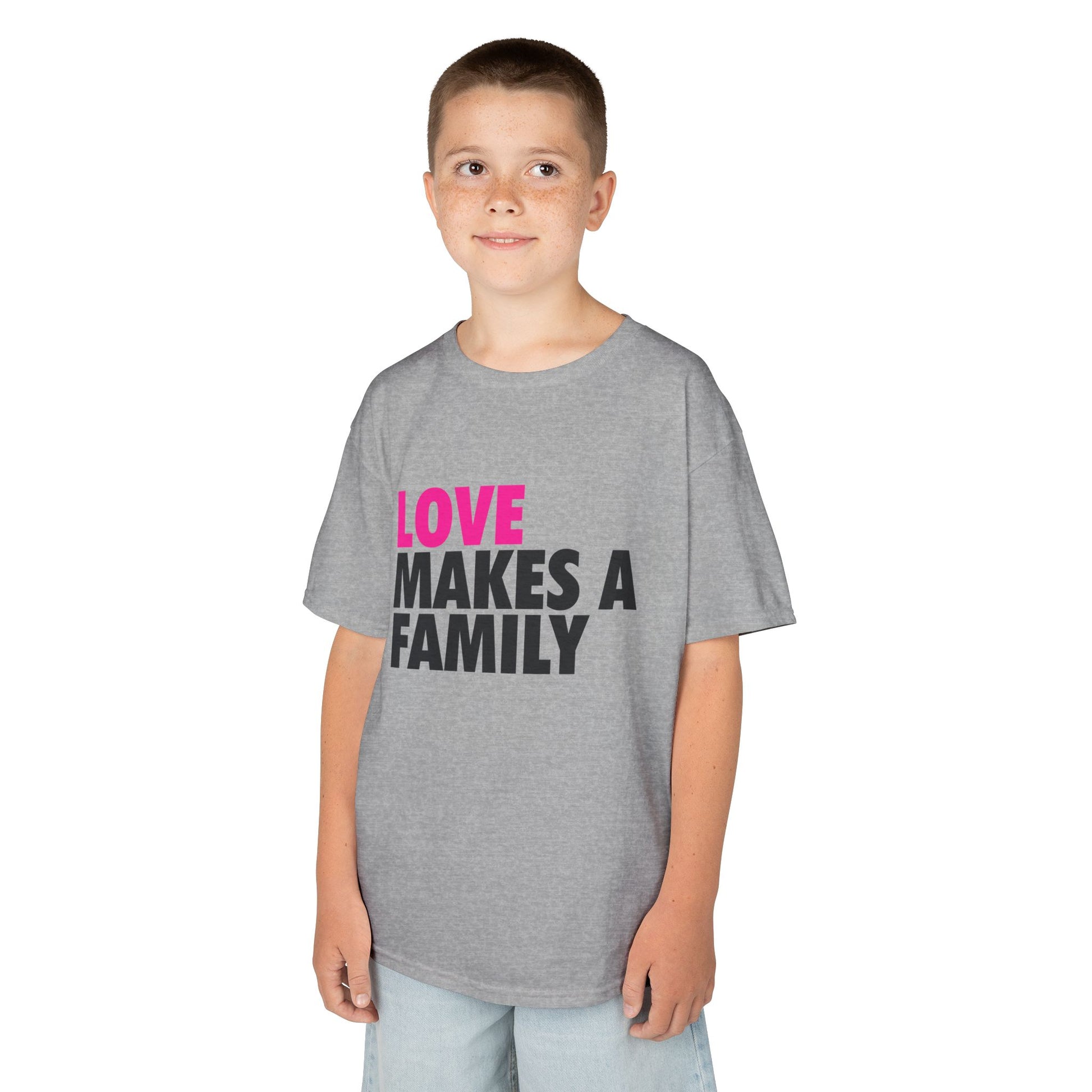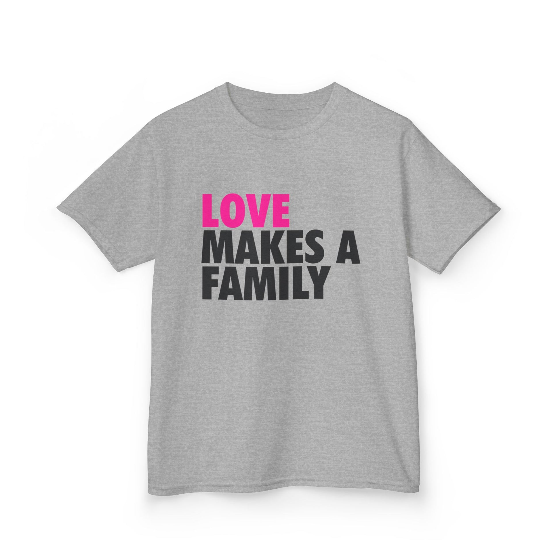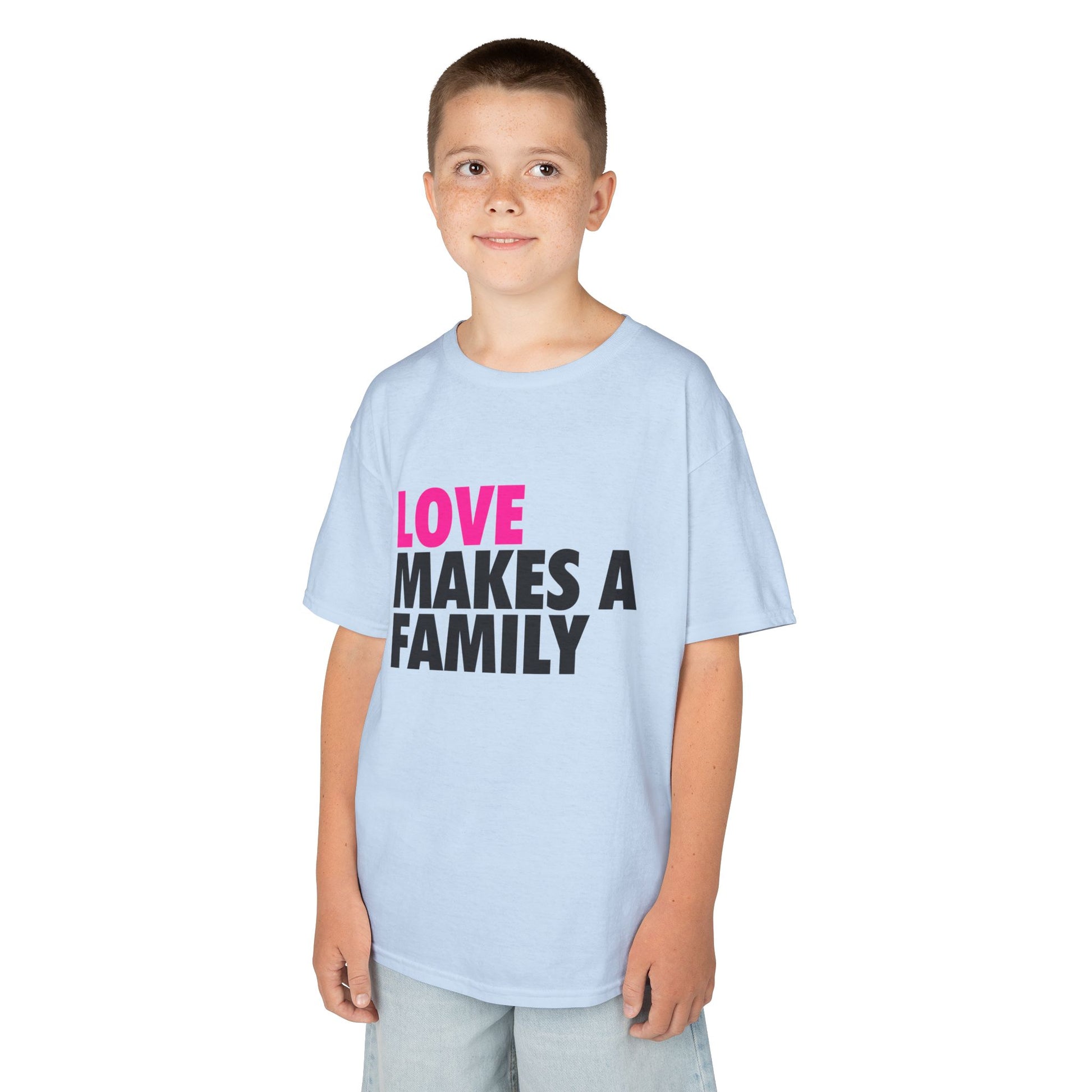 Kids Unisex Love Makes a Family Tee, Youth Cotton T-Shirt, Family Pride Shirt, LGBTQ Merch, Gift for Rainbow Kids, Cute Rainbow Families T-Shirt.