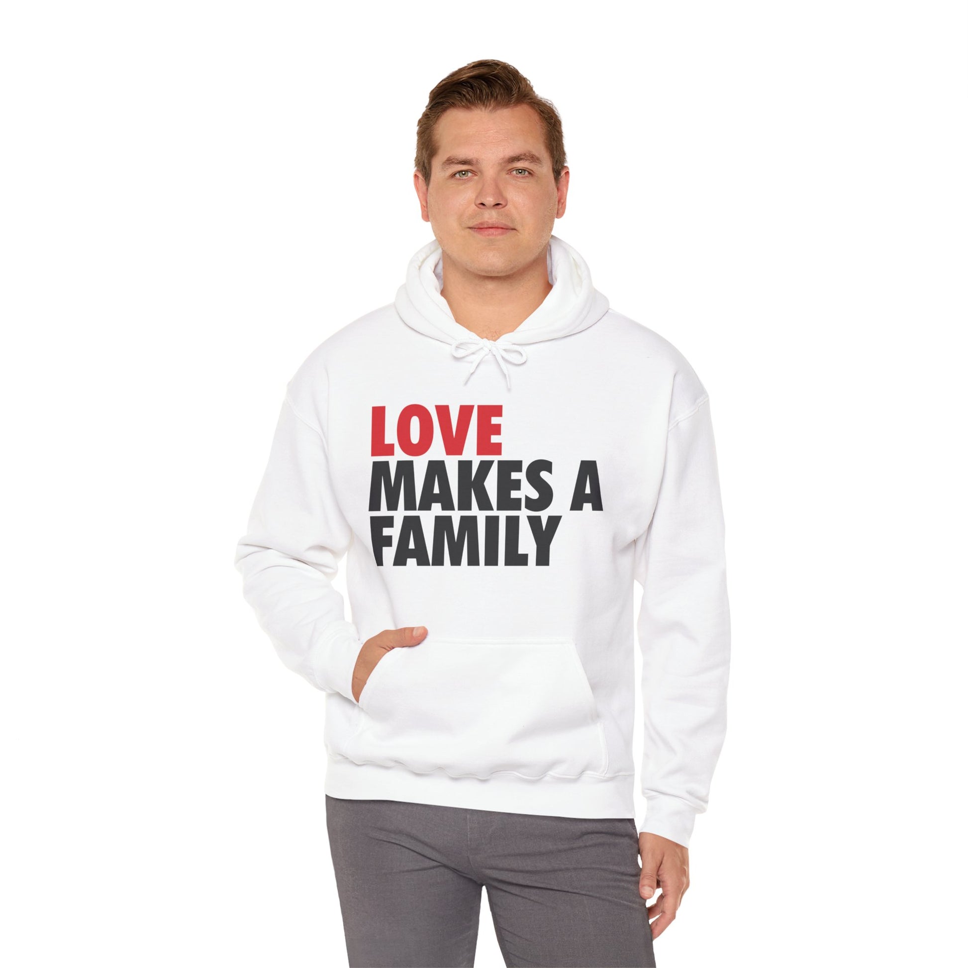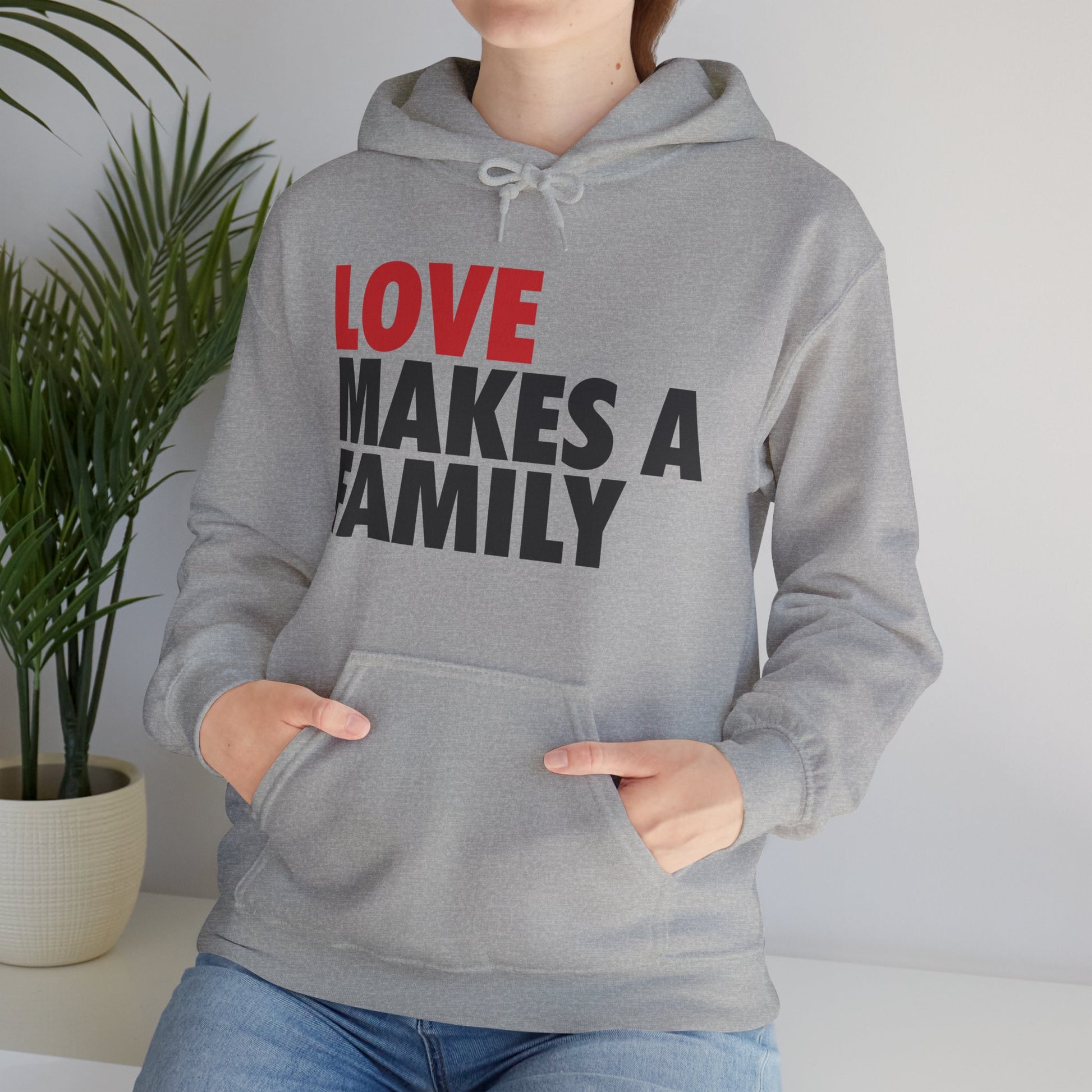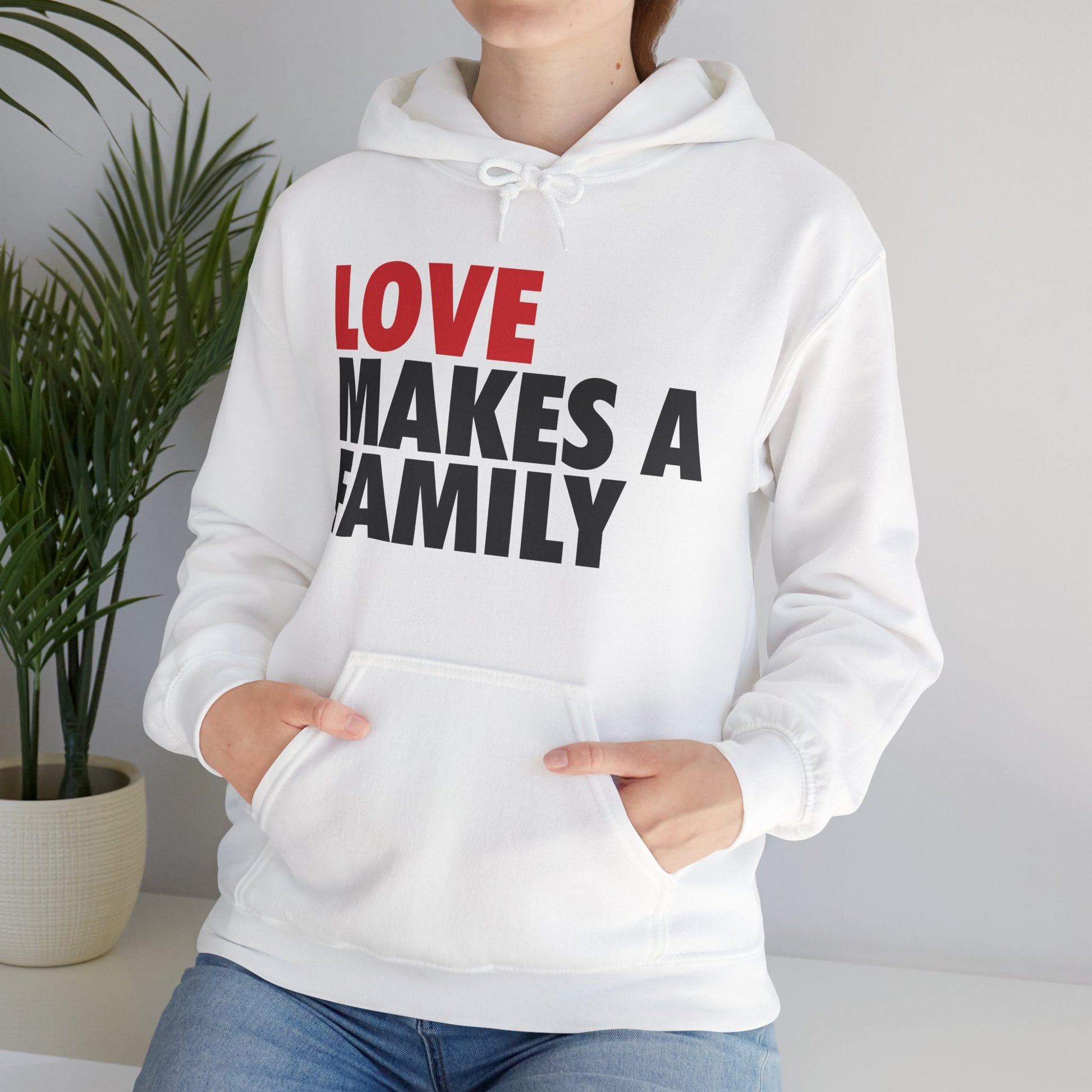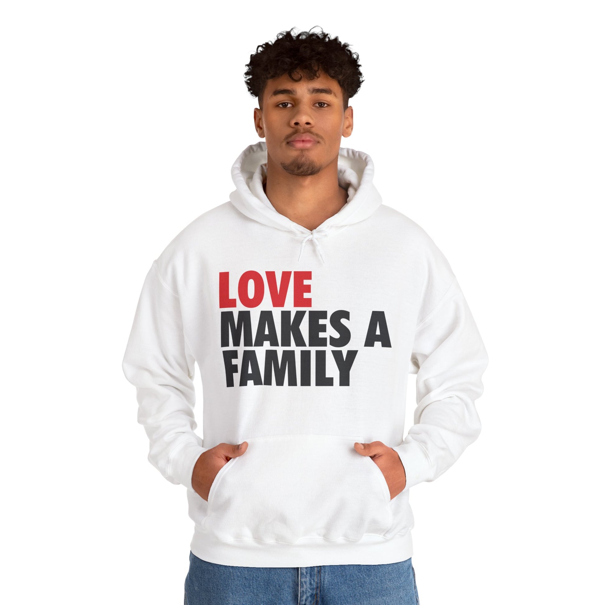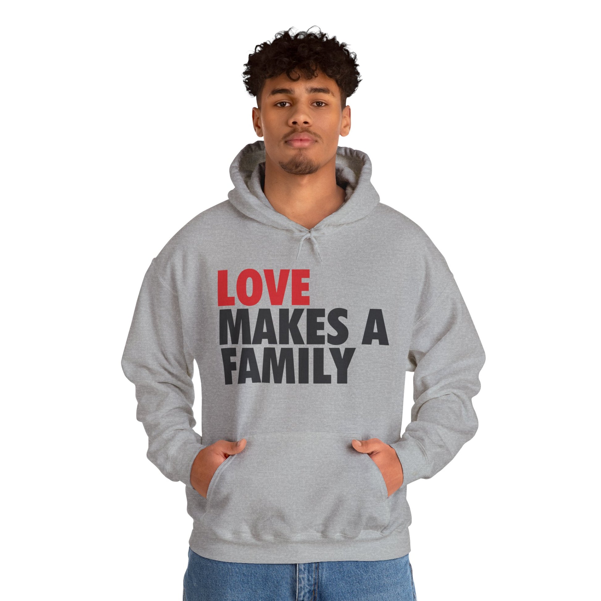 Love Makes a Family Hoodie Adult Unisex, Rainbow Families Hoodie, Unisex Rainbow Family Merch, LGBTQ+ Pride Apparel, Rainbow Families Australia hoodie, red and black logo