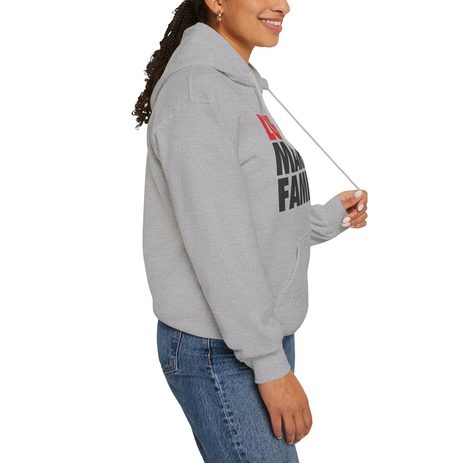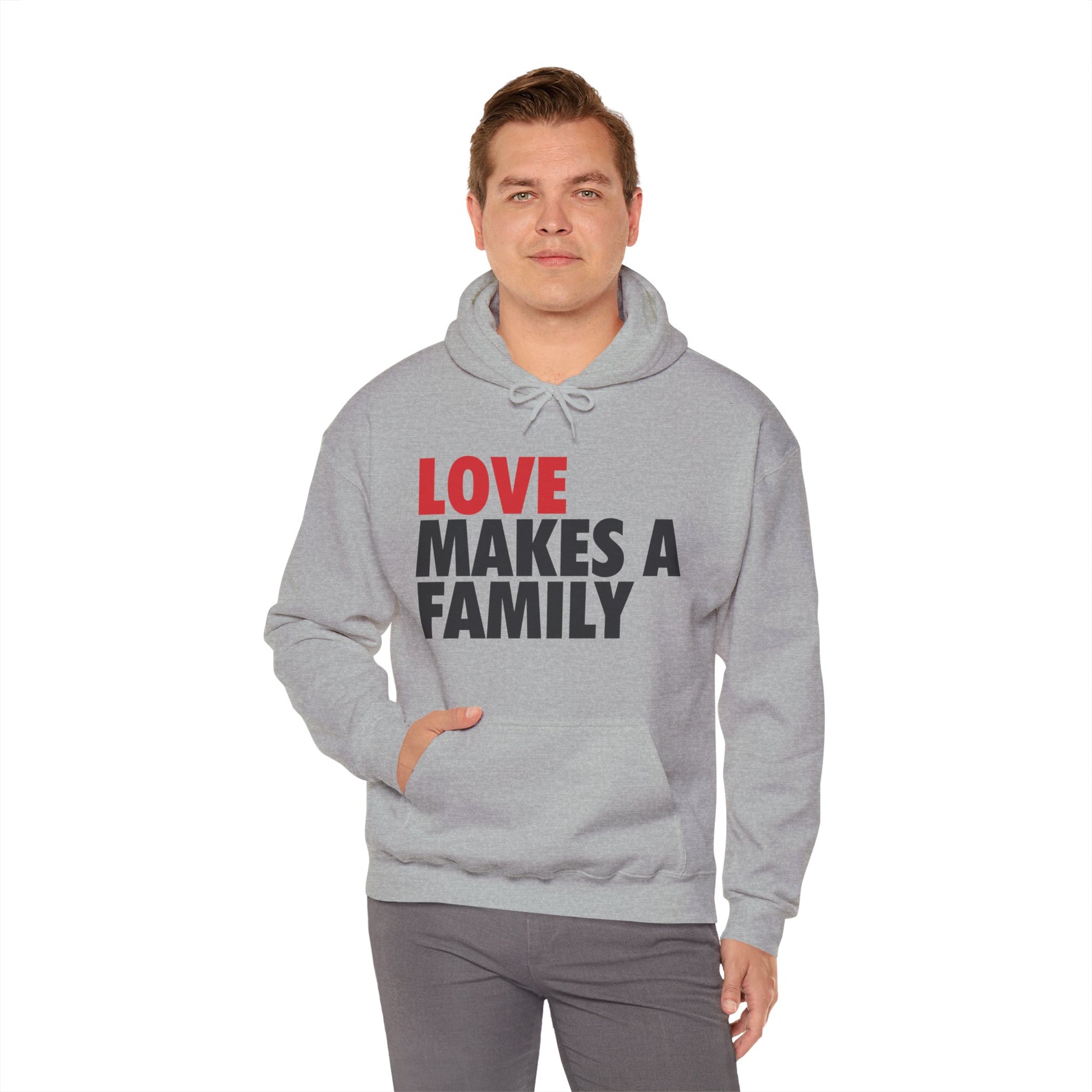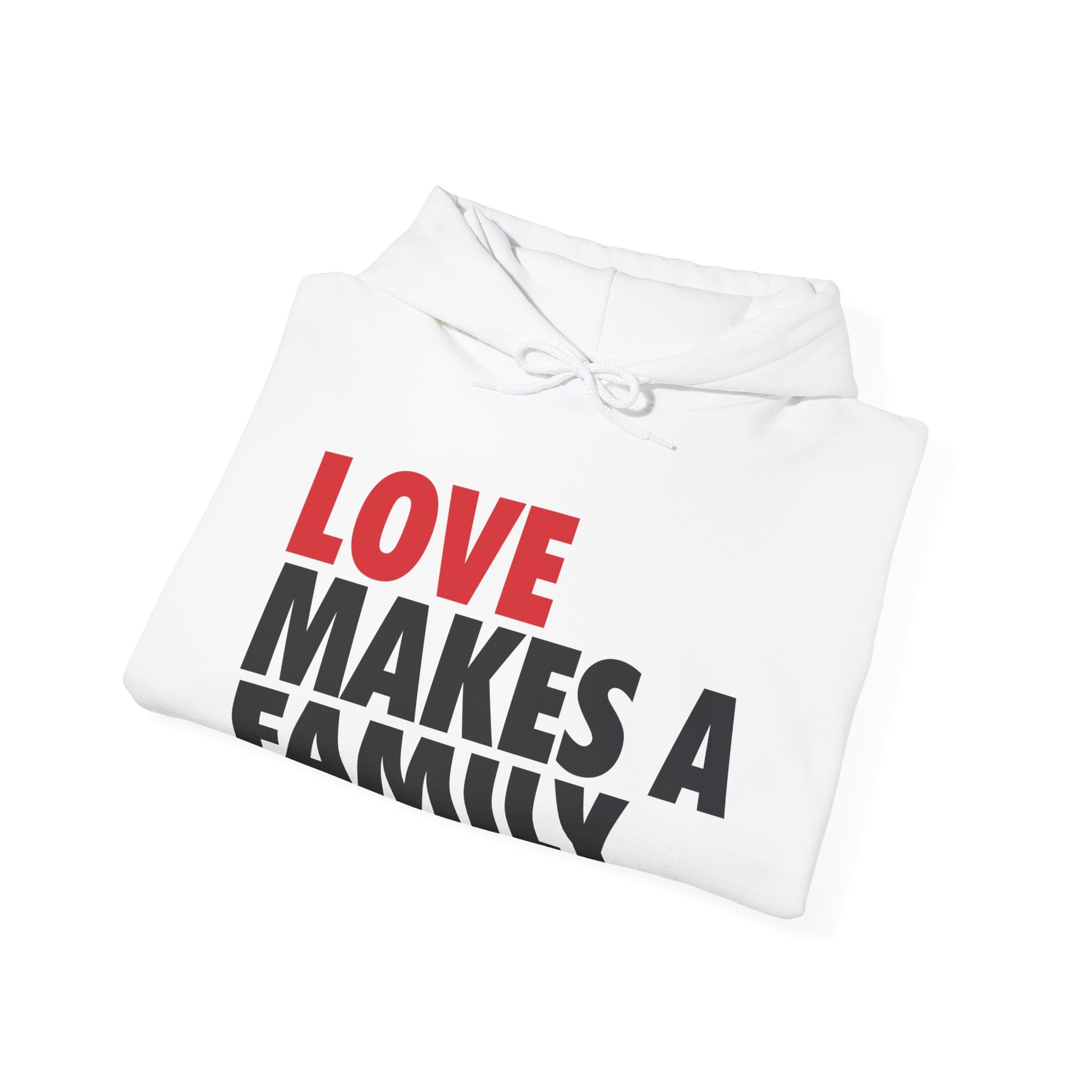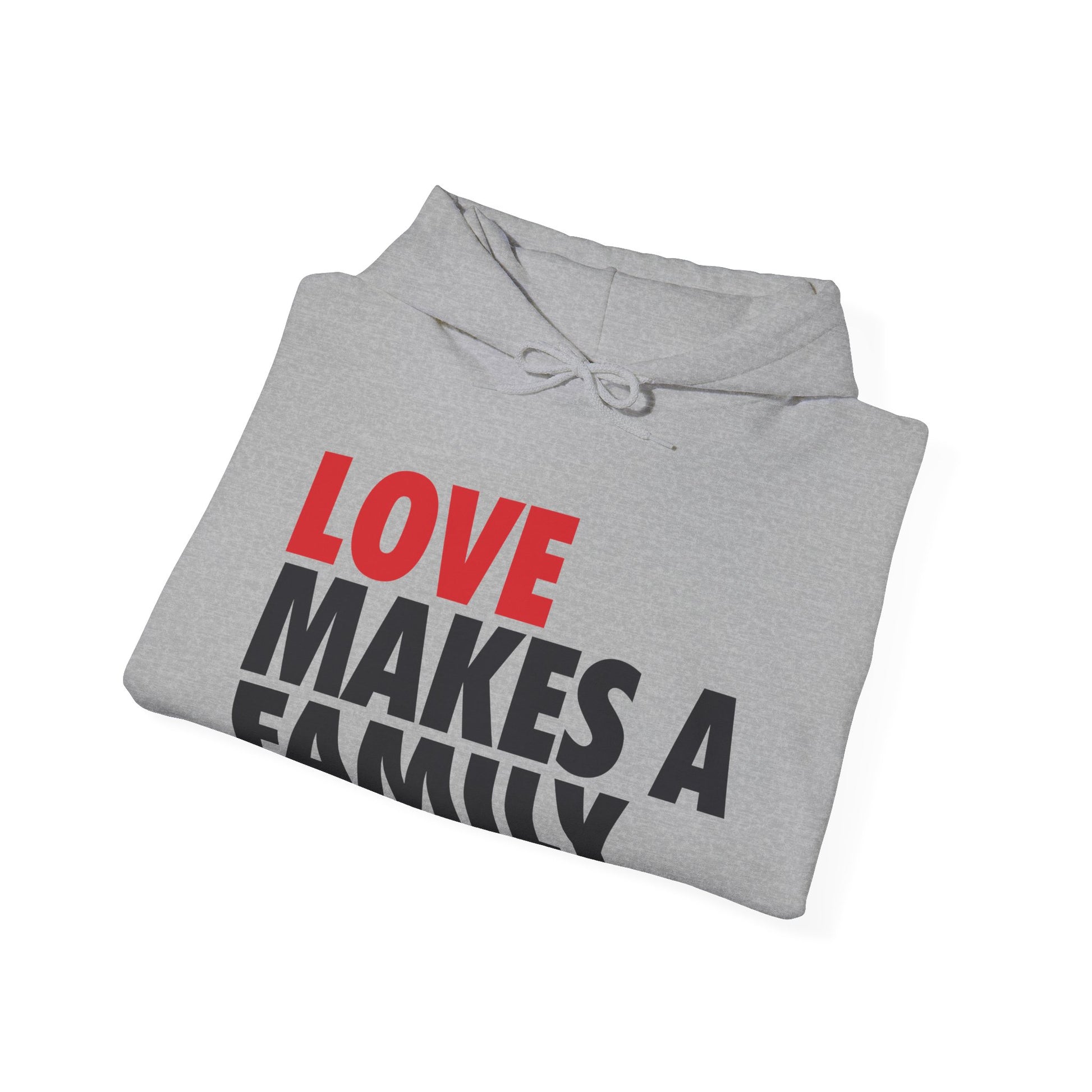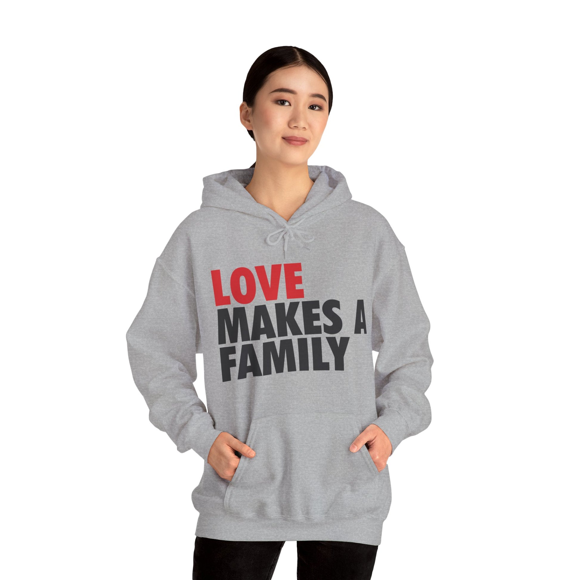 Love Makes a Family Hoodie Adult Unisex, Rainbow Families Hoodie, Unisex Rainbow Family Merch, LGBTQ+ Pride Apparel, Rainbow Families Australia hoodie, red and black logo