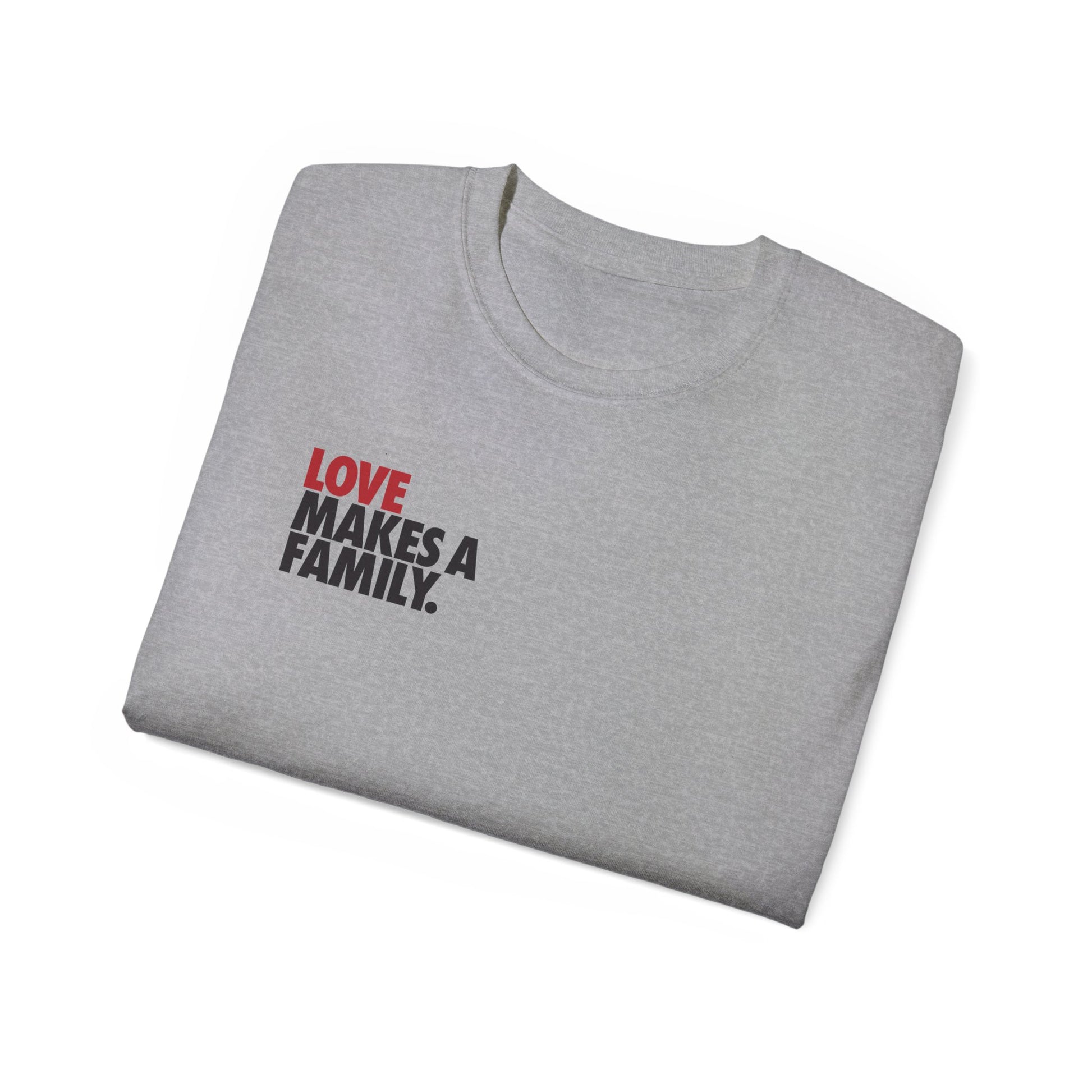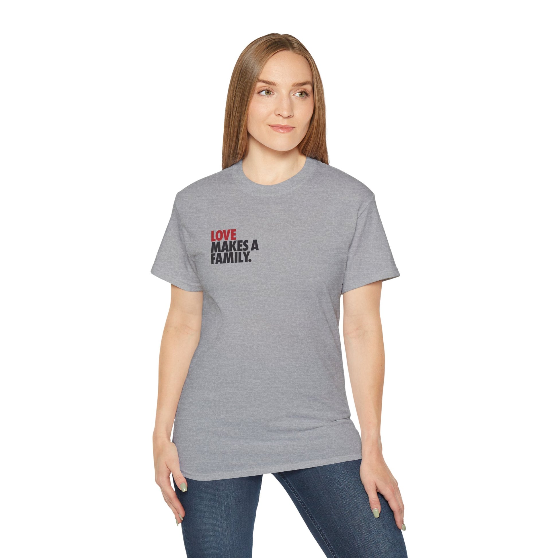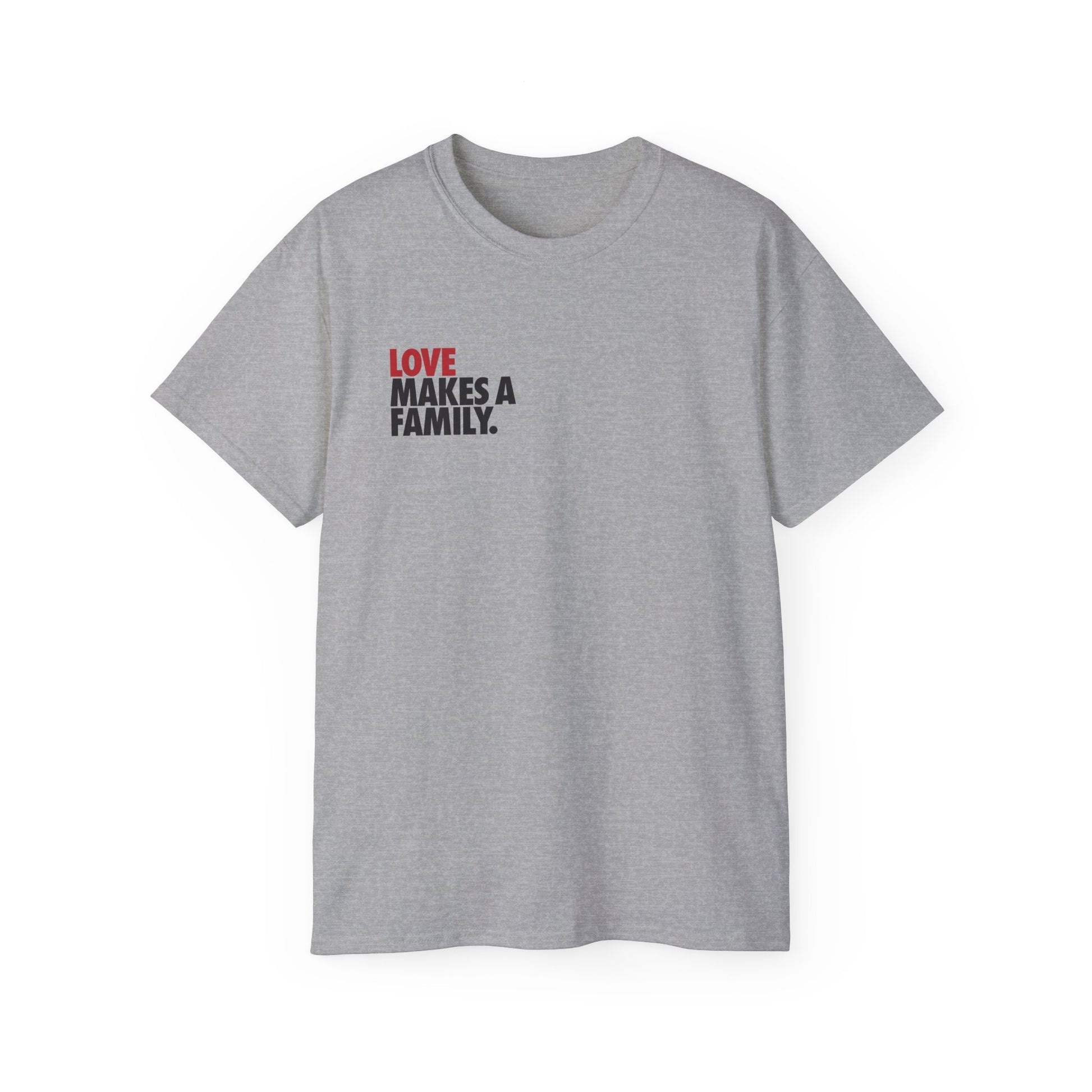 Love Makes A Family Unisex Ultra Cotton Tee, Rainbow Families T-Shirt, LGBTQ+ T-shirt, Queer Apparel, Pride Tee, Queer Families Tee, Rainbow Merch